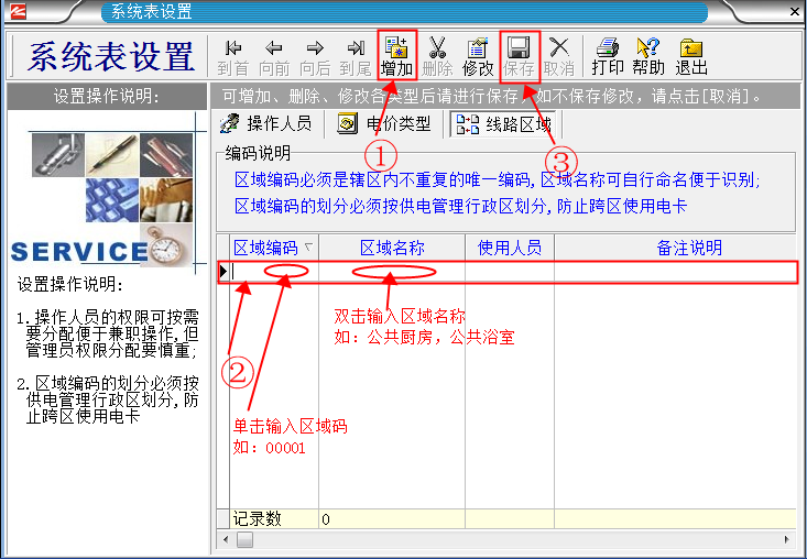 電價設置好之后,就設置區域。