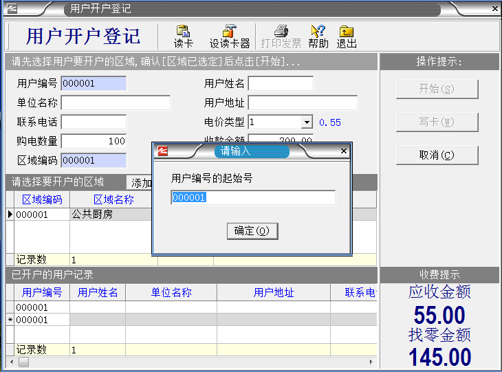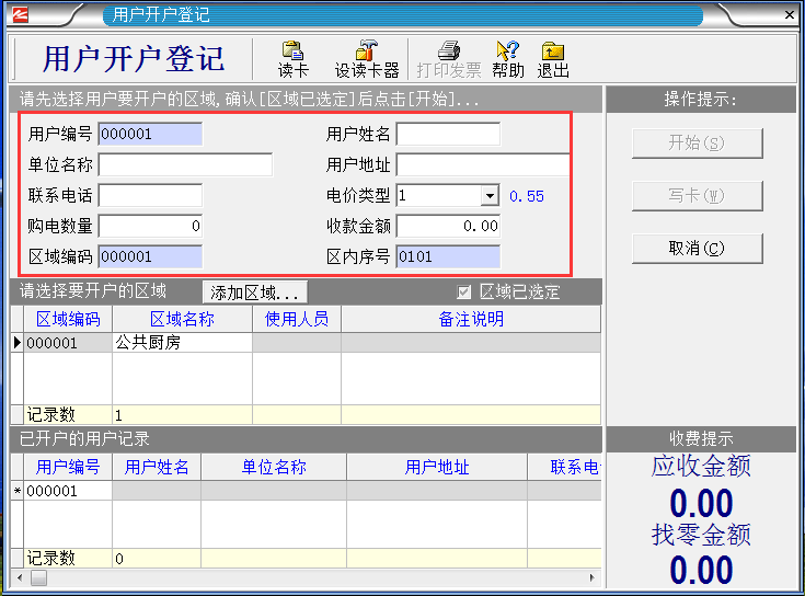 系統設置完成之后,把IC卡插入讀卡器,就進入制作“區域設置卡”。如下圖